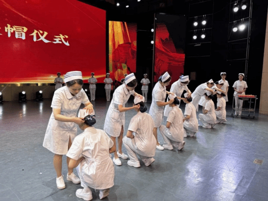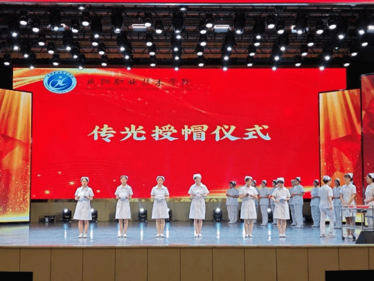 护理专业教师为员工代表传光授帽,这是南丁格尔精神的传承,亦是守护生命使命的交接,护生们自此接过责任,踏上护理新征程。